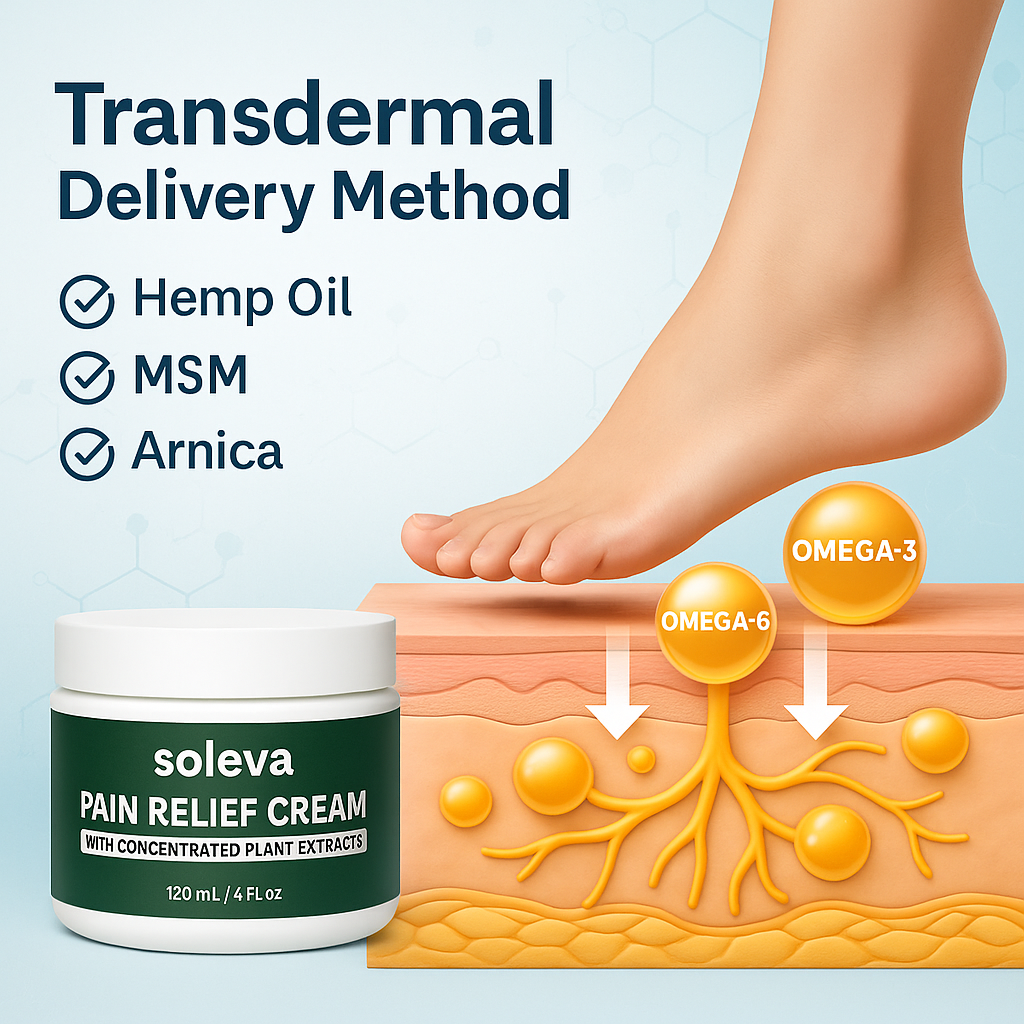 Soleva works by delivering essential nutrients - Omega 3 and Omega 6 - directly through the skin to the nerves, muscles, and joints where discomfort starts.